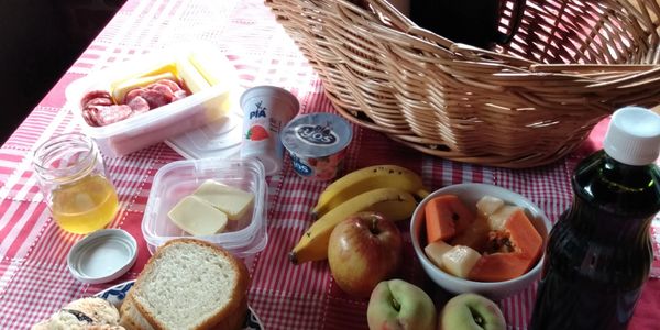Oferecemos aos nossos hóspedes um delicioso café da manhã com produtos coloniais especialmente selecionados na Serra Gaúcha, alguns deles são produzidos em nossa pequena propriedade rural! A cesta de café da manhã é entregue na própria cabana, no horário agendado das 8h às 10h.